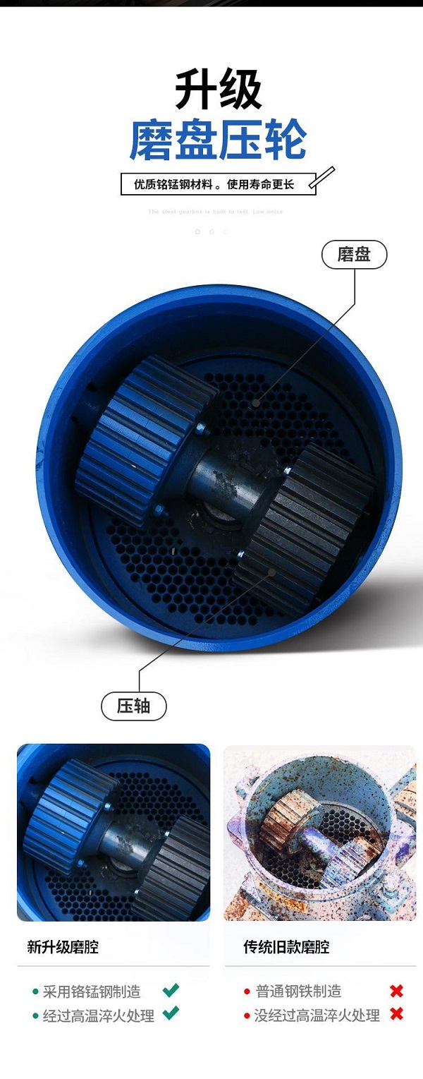 采用螺桿中間調(diào)壓機(jī)構(gòu),模具間隙隨大隨小,適用不同物料,保證壓制效果。它的壓輪采用體大槽寬,承壓耐磨,壓輪采用多個(gè)均布,運(yùn)轉(zhuǎn)平穩(wěn),同時(shí)增加了壓制區(qū),提高了生產(chǎn)效率。木屑、秸稈壓縮成型需要很大的壓力,在同類制粒、壓塊、制棒設(shè)備中,壓輪部件是整個(gè)設(shè)備的中間部件。“錐輪平模”所具有的可任意加大壓輪優(yōu)勢(shì)是其它設(shè)備不可論比的,如環(huán)模型制粒機(jī)因受環(huán)模模具直徑,導(dǎo)致壓輪軸承室變小,裝配的軸承沒有較強(qiáng)的承受壓力能力,軸承損壞導(dǎo)致設(shè)備三停兩休的弊端。該機(jī)型壓縮成型多樣化,圓棒、方塊、顆粒只要調(diào)換一下模具都可以做,適應(yīng)不同物料壓縮成型,達(dá)到良好效益。其制粒室設(shè)有觀察門,隨時(shí)檢查便于保養(yǎng)、維修。